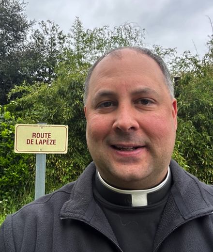 Fr. Jason Vidrine on a visit to Lapèze in April of 2025.